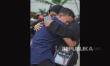 Seorang jamaah haji Aceh yang tergabung dalam kelompok terbang (kloter) 12 memeluk anaknya saat tiba di Aula Asrama Haji Embarkasi Aceh, Banda Aceh, Aceh, Senin (31/7/2023). Petugas Penyelenggara Ibadah Haji (PPIH) Embarkasi Aceh memberangkatkan 4.561 peserta haji pada tahun 2023, dan yang kembali ke Tanah Air sebanyak 4.550 orang, 13 orang meninggal dunia di Arab Saudi dan dua orang jamaah mutasi antarembarkasi.  (FOTO : Antara/Khalis Surry)