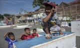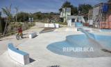 Sejumlah anak bermain di area ruang publik Ciko Arena 5, Batununggal, Kota Bandung, Jawa Barat, Selasa (1/8/2023). Pemerintah Kota Bandung melakukan penataan bantaran Sungai Cikapundung Kolot dengan membangun ruang publik Ciko Arena 5 dengan luas 1.500 meter, serta memiliki berbagai fasilitas olahraga dan tanaman bagi masyarakat sekitar. (FOTO : ABDAN SYAKURA/REPUBLIKA)