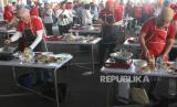 Sejumlah Aparatur Sipil Negara (ASN) mengikuti lomba memasak berbahan ikan dalam Kampanye Konsumsi Pangan Non Beras dan Gemar Makan Ikan di Mini Block Office, Balai Kota Malang, Jawa Timur, Rabu (2/8/2023). Kampanye tersebut diisi dengan berbagai lomba antara lain kompetisi makanan olahan ikan, menghias tumpeng berbahan non beras serta memasak ikan yang diikuti walikota, kepala dinas setempat, dan (ASN). (FOTO : ANTARA FOTO/Ari Bowo Sucipto )