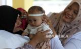 REPUBLIKA.CO.ID, BANDA ACEH -- Petugas dinas kesehatan mengukur besar kepala bayi pada aksi timbang serentak untuk pencegahan stunting di gampong (desa) Pande, Banda Aceh, Aceh, Rabu (2/8/2023).
