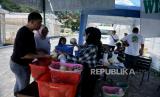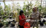 Pengunjung membeli buah melon jenis baby sweet premium di Green House Masjid Agung Jawa Tengah (MAJT), Kota Semarang, Jawa Tengah, Rabu (2/8/2023). MAJT menyediakan kawasan agrowisata bagi pengenjung sebanyak enam green house yang ditanami buah melon. Setiap pengunjung yang hendak memebeli buah melon dapat merasakan sensasi memetik buah melon langsung dari kebunnya dengan harga perkilo sekitar Rp30 ribu. (FOTO : Republika/Thoudy Badai)