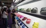 Pengunjung melihat-lihat barang yang dipamerkan dalam Pameran Indo Leather & Footwear Expo 2023 di JlExpo, Kemayoran, Jakarta, Kamis (3/5/2023). Pameran bertaraf internasional dalam bidang sepatu, kulit dan fashion ini bertujuan meningkatkan efisiensi dalam industri manufaktur kulit dan alas kaki dalam membantu pelaku bisnis mengoptimalkan proses produksi, menghasilkan produk kulit berkualitas dan mengenalkan inovasi atau trend fashion kulit saat ini. Pameran yang berlangsung 3-5 agustus 2023 ini diikuti oleh lebih dari 200 peserta baik lokal maupun internasional. (FOTO : Republika/Prayogi)
