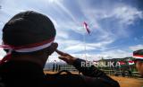 REPUBLIKA.CO.ID,ACEH UTARA -- Peserta pengibar bendera melakukan penghormatan saat pengibaran bendera Merah Putih simbolis di puncak Gunung Salak, Aceh Utara, Aceh, Rabu (3/8/2023).