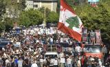 Ratusan warga Lebanon memperingati 3 tahun tragedi ledakan Beirut di pelabuhan Beirut Jumat (4/8/2023). (FOTO : EPA-EFE/WAEL HAMZEH)