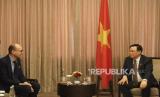 Co-Founder Traveloka Albert (kiri) bersama Chairman of the National Assembly of Vietnam Vuong Dinh Hue melakukan pertemuan di sela kunjungannya pada konferensi ASEAN Inter-Parliamentary Assembly (AIPA), di Jakarta, Sabtu (5/8/2023). Traveloka berkomitmen untuk membentuk kemitraan yang berdampak serta berkontribusi pada pertumbuhan ekonomi Vietnam dan kemajuan teknologi di sektor pariwisata. (FOTO : Dok Republika)