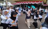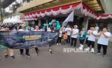 Peserta mengikuti Fun Walk Milad ke-1 BSI Maslahat di Jakarta, Ahad, (6/8/2023). Program Campaign Bahagiakan 1.111 Yatim Dhuafa BSI Maslahat selain memberikan santunan yatim dhuafa juga akan mengajak anak yatim dan dhuafa untuk bermain gembira di Dufan Ancol. (FOTO : Dok Republika)