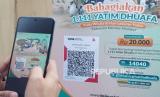 Peserta Fun Walk Milad ke-1 BSI Maslahat melakukan donasi dalam Campaign Bahagiakan 1.111 Yatim Dhuafa yang merupakan rangkaian Milad ke-1 BSI Maslahat, di Jakarta, Ahad, (6/8/2023). Program Campaign Bahagiakan 1.111 Yatim Dhuafa BSI Maslahat selain memberikan santunan yatim dhuafa juga akan mengajak anak yatim dan dhuafa untuk bermain gembira di Dufan Ancol. (FOTO : Dok Republika)