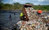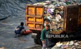 Pekerja melihat truk pengangkut sampah saat bongkar muatan di TPST Tamanmartani, Sleman, Yogyakarta, Senin (7/8/2023). Pemkab Sleman mulai mengoperasikan TPST Tamanmartani, Kalasan, Sleman untuk pembuangan sampah untuk 45 hari ke depan. Lokasi TPST ini nanti akan menampung 50 ton sampah. Pada hari pertama pengoperasian sebanyak 5 truk sampah yang membongkar muatan, selanjutnya targetnya 10 truk setiap harinya. (FOTO : Republika/Wihdan Hidayat)