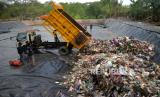 Petugas meratakan bongkaran sampah di TPST Tamanmartani, Sleman, Yogyakarta, Senin (7/8/2023). Pemkab Sleman mulai mengoperasikan TPST Tamanmartani, Kalasan, Sleman untuk pembuangan sampah untuk 45 hari ke depan. Lokasi TPST ini nanti akan menampung 50 ton sampah. Pada hari pertama pengoperasian sebanyak 5 truk sampah yang membongkar muatan, selanjutnya targetnya 10 truk setiap harinya. (FOTO : Republika/Wihdan Hidayat)