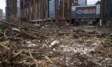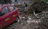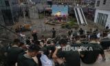 REPUBLIKA.CO.ID,  MENTOUGOU  --  Puing-puing banjir tertinggal di dekat gedung perkantoran komersial setelah banjir dari sungai yang meluap di distrik Mentougou di pinggiran Beijing, China, Senin, (7/8/2023).