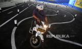 Pengendara motor mengikuti pengenalan lapangan uji praktik SIM C di Satpas Polresta Bogor Kota, Jawa Barat, Senin (7/8/2023). Satlantas Polresta Bogor Kota secara resmi mulai memberlakukan perubahan uji praktik pembuatan SIM C dengan meniadakan tes rute slalom atau zig-zag, mengganti rute angka 8 menjadi huruf S, lebar rute menjadi 2,5 kali lebar kendaraan dan uji pengereman keseimbangan. (FOTO : ANTARA FOTO/Arif Firmansyah)