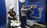 Kasat Lantas Polresta Bogor Kota Kompol Galih Apria memberikan penjelasan kepada pengendara motor saat pengenalan lapangan uji praktik SIM C di Satpas Polresta Bogor Kota, Jawa Barat, Senin (7/8/2023). Satlantas Polresta Bogor Kota secara resmi mulai memberlakukan perubahan uji praktik pembuatan SIM C dengan meniadakan tes rute slalom atau zig-zag, mengganti rute angka 8 menjadi huruf S, lebar rute menjadi 2,5 kali lebar kendaraan dan uji pengereman keseimbangan. (FOTO : ANTARA FOTO/Arif Firmansyah)