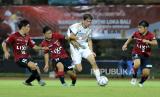 Pesepak bola Real Madrid U-18 Alejandro Sanchez Mantecon (kanan) berusaha melewati pesepak bola Kashima Antlers U-18 Dobashi Ryunosuke (tengah) dan Kishino Eita (kiri) saat pertandingan International Youth Championship 2023 di Stadion I Gusti Ngurah Rai, Denpasar, Bali, Senin (7/8/2023). (FOTO : ANTARA FOTO/Fikri Yusuf)