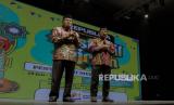 Ustadz Wijayanto bersama Said Aqil Siradj menyampaikan tausiyah saat gelaran Festival Hijriah di Jogja Expo Center, Bantul, Daerah Istimewa Yogyakarta, Senin (7/8/2023). Dalam tausiyahnya ustadz Wijayanto menyampaikan pesan dakwah terkait hijrahnya seorang muslim dengan memperbaiki hubungan dengan Allah SWT dan dengan manusia. Republika Festival Hijriah digelar oleh Republika bekerjasama dengan Kamar Dagang dan Industri (KADIN) Komite Tiongkok dalam rangka menyambut 1 Muharram 1445 Hijriah yang berlangsung hingga 10 Agustus mendatang di sembilan kota. Kota Yogyakarta merupakan kota yang ke delapan dan akan ditutup di Kota Surabaya pada 10 Agustus mendatang. Selain tausiyah, gelaran Festival Hijriah juga menghadirkan beragam kegiatan seperti bazar UMKM dan penampilan seni budaya Xinjiang dari komunitas muslim Xinjiang. (FOTO : Republika/Thoudy Badai)