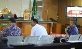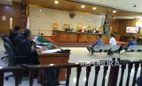 Plh Wali Kota Bandung Ema Sumarna, Ketua Komisi C DPRD Kota Bandung Yudi Cahyadi, dan pejabat pengadaan Dishub Kota Bandung Hari Hartawan dihadirkan jaksa penuntut umum (JPU) sebagai saksi dalam persidangan lanjutan kasus suap proyek Bandung Smart City di Pengadilan Tipikor pada PN Bandung, Rabu (9/8/2023). Mereka hadir untuk memberikan kesaksian untuk tiga terdakwa dalam persidangan itu yaitu Direktur Utama PT CIFO Sony Setiadi, Manager PT Sarana Mitra Adiguna Andreas Guntoro, dan Direktur PT Sarana Mitra Adiguna Benny. (FOTO : Edi Yusuf/Republika)