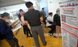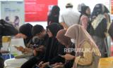 Pengunjung mengisi berkas lamaran saat Bantul Career Expo 2023 di Pendopo SMKN 1 Kasihan, Bantul, Yogyakarta, Rabu (9/8/2023). Bursa kerja yang digelar oleh Dinas Tenaga Kerja dan Transmigrasi (Disnakertrans) Bantul ini menyediakan 4.058 lowongan pekerjaan dari 30 perusahaan. Pada acara yang digelar hingga Kamis (10/8/2023) juga dibuka lowongan pekerjaan mulai dari lulusan SMA hingga Perguruan Tinggi. (FOTO : Republika/Wihdan Hidayat)