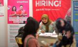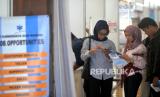 REPUBLIKA.CO.ID,YOGYAKATA -- Pengunjung mencari informasi lowongan pekerjaan saat Bantul Career Expo 2023 di Pendopo SMKN 1 Kasihan, Bantul, Yogyakarta, Rabu (9/8/2023).