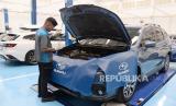 Mekanik melakukan pemeriksaan mesin mobil Subaru saat peresmian Plaza Subaru Pondok Indah, Jakarta Selatan, Rabu (9/8/2023). Subaru Corporation Japan bersama Subaru Indonesia meresmikan jaringan diler pertamanya di Ibu Kota melalui Plaza Subaru Pondok Indah yang hadir dengan layanan 3S (sales, service, dan sparepart) dengan standar tinggi yang ditetapkan. (FOTO : Republika/Edwin Dwi Putranto)