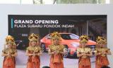 Penari tampil saat peresmian Plaza Subaru Pondok Indah, Jakarta Selatan, Rabu (9/8/2023). Subaru Corporation Japan bersama Subaru Indonesia meresmikan jaringan diler pertamanya di Ibu Kota melalui Plaza Subaru Pondok Indah yang hadir dengan layanan 3S (sales, service, dan sparepart) dengan standar tinggi yang ditetapkan. (FOTO : Republika/Edwin Dwi Putranto)