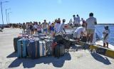 Sejumlah wisatawan asing antre menaiki kapal di pelabuhan Gili Trawangan, Desa Gili Indah, Kecamatan Pemenang, Tanjung, Lombok Utara, NTB, Kamis (10/8/2023). Data Dinas Pariwisata Lombok Utara mencatat rata-rata kunjungan wisatawan ke destinasi wisata Tiga Gili (Gili Trawangan, Gili Meno dan Gili Air) pada masa puncak (high season) liburan saat ini mencapai 2.000 orang per hari. (FOTO : Antara/Ahmad Subaidi)