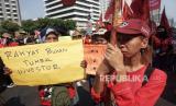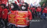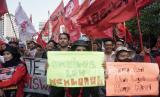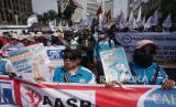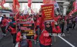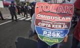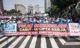 Ribuan buruh menuntut pemerintah dan DPR mencabut UU omnibus law Cipta Kerja..