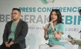 Brand Ambassador Pristine Nana Mirdad bersama Brand Representative Pristine Rendi Teodorus menjadi narasumber talkshow terkait pentingnya keseimbangan gaya hidup di Jakarta, Kamis (10/8/2023). Pristine8.6+ air mineral pH tinggi ingin mengingatkan kembali pentingnya keseimbangan gaya hidup dengan mengajak Masyarakat Indonesia untuk berpartisipasi dalam aksi Gerakan Lebih Baik dalam bentuk aktivitas yoga Bersama. Dengan mengusung tagar #BergerakLebihBaik, Pristine8.6+ mengajak 2.500 orang untuk mengikuti activity yoga Bersama for free di studio yoga ternama di Indonesia yaitu Yoga Fit, yang memiliki beberapa lokasi di Jakarta dan Tangerang. Aktivitas ini akan berlangsung selama dua minggu. Dengan kuota setiap kelas yakni 40 orang setiap hari Senin - Minggu. (FOTO : Prayogi/Republika)