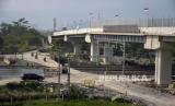 Kendaraan melintas di bawah Jembatan Cibiru Hilir usai diresmikan di Cibiru Hilir, Kabupaten Bandung, Jawa Barat, Kamis (10/8/2023). PT KCIC meresmikan Jembatan Cibiru Hilir yang merupakan salah satu akses menuju Stasiun Kereta Cepat Tegalluar. Jembatan yang menghubungkan Jalan Sor GBLA dengan Cibiru Hilir tersebut memiliki panjang sekitar 300 meter dan lebar sembilan meter. (FOTO : ABDAN SYAKURA/REPUBLIKA)