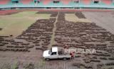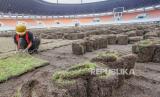 REPUBLIKA.CO.ID, CIBINONG -- Pekerja melakukan renovasi pergantian rumput Stadion Pakansari, Kabupaten Bogor, Jawa Barat, Kamis (10/8/2023).