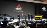 Director of Sales & Marketing Division PT MMKSI Irwan Kuncoro, Executive Vice President Mitsubishi Motors Corporation Hiroshi Nagaoka, President & CEO Mitsubishi Motors Corporation Takao Kato, Executive Vice President Mitsubishi Motors Corporation Tatsuo Nakamura, dan President Director PT MMKSI Atsushi Kurita (dari kiri) saat peluncuran Mitsubishi XFORCE di sela acara pembukaan GAIKINDO Indonesia International Auto Show (GIIAS) 2023 di ICE BSD City, Tangerang Banten, Kamis (10/8/2023). Mitsubishi XFORCE merupakan kendaraan penumpang dengan model compact SUV 5 seater yang dikembangkan untuk bisa digunakan di wilayah ASEAN dan Indonesia menjadi negara pertama tempat pemasarannya. (FOTO : Republika/Edwin Dwi Putranto)