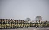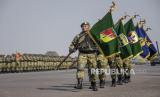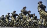 Personel Komponen Cadangan (Komcad) melakukan defile saat Upacara Penetapan Komponen Cadangan Tahun 2023 di Lapangan Pusdiklatpassus, Batujajar, Kabupaten Bandung Barat, Jawa Barat, Jumat (11/8/2023). Menteri Pertahanan Prabowo Subianto menetapkan sebanyak 2.497 personel Komcad TNI Tahun 2023. Komcad tersebut merupakan sumber daya yang disiapkan untuk dikerahkan melalui mobilisasi untuk memperbesar dan memperkuat kekuatan serta kemampuan komponen utama. (FOTO : ABDAN SYAKURA/REPUBLIKA)