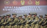Personel Komponen Cadangan (Komcad) melakukan defile usai Upacara Penetapan Komponen Cadangan Tahun 2023 di Lapangan Pusdiklatpassus, Batujajar, Kabupaten Bandung Barat, Jawa Barat, Jumat (11/8/2023). Menteri Pertahanan Prabowo Subianto menetapkan sebanyak 2.497 personel Komcad TNI Tahun 2023. Komcad tersebut merupakan sumber daya yang disiapkan untuk dikerahkan melalui mobilisasi untuk memperbesar dan memperkuat kekuatan serta kemampuan komponen utama. (FOTO : ABDAN SYAKURA/REPUBLIKA)