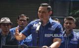 Ketua Umum Partai Demokrat Agus Harimurti Yudhoyono (AHY) menyampaikan keterangan pers terkait Penolakan MA Terhadap PK Moeldoko di Kantor DPP Partai Demokrat, Jakarta, Jumat (11/8/2023). Dalam kesempatan tersebut AHY merasa senang dan terharu atas putusan MA yang menolak Peninjauan Kembali (PK) Moeldoko. AHY juga merasa bersyukur putusan tersebut terjadi tepat di hari ulang tahunnya yang ke-45 tahun. Menurutnya, itu menjadi kado terindah. Dengan hasil itu, AHY dan kepengurusan Partai Demokrat di bawahnya tetap sah. (FOTO : Prayogi/Republika)