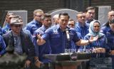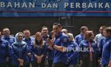 Ketua Umum Partai Demokrat Agus Harimurti Yudhoyono (AHY) bersiap menyampaikan keterangan pers terkait Penolakan MA Terhadap PK Moeldoko di Kantor DPP Partai Demokrat, Jakarta, Jumat (11/8/2023). Dalam kesempatan tersebut AHY merasa senang dan terharu atas putusan MA yang menolak Peninjauan Kembali (PK) Moeldoko. AHY juga merasa bersyukur putusan tersebut terjadi tepat di hari ulang tahunnya yang ke-45 tahun. Menurutnya, itu menjadi kado terindah. Dengan hasil itu, AHY dan kepengurusan Partai Demokrat di bawahnya tetap sah. (FOTO : Prayogi/Republika)