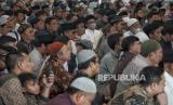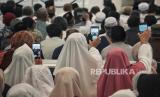 Jamaah mendengarkan kajian umum yang disampikan oleh Ulama Gus Miftah di Masjid At-Thohir, Depok, Jawa Barat, Jumat (11/8/2023). Dalam kajian umum tersebut Gus Miftah menyampaikan terkait hal Menjaga Kesatuan dengan Ukhuwah Bangsa. (FOTO : Prayogi/Republika)