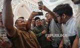 Menteri BUMN Erick Thohir berfoto bersama Jamaah usai acara Kajian Umum di Masjid At-Thohir, Depok, Jawa Barat, Jumat (11/8/2023). Dalam kajian umum tersebut Gus Miftah menyampaikan kajian terkait hal Menjaga Kesatuan dengan Ukhuwah Bangsa. (FOTO : Prayogi/Republika)