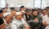 Ulama Gus Miftah bersama Menteri BUMN Erick Thohir dan Jamaah berfoto usai acara Kajian Umum di Masjid At-Thohir, Depok, Jawa Barat, Jumat (11/8/2023). Dalam kajian umum tersebut Gus Miftah menyampaikan kajian terkait hal Menjaga Kesatuan dengan Ukhuwah Bangsa. (FOTO : Prayogi)
