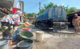 REPUBLIKA.CO.ID,  KALIKAYEN  --  Sejumlah warga RT 03/RW 04 Dusun Kebontaman, Desa kalikayen, Kabupaten Semarang, menyiapkan berbagai wadah untuk menampung bantuan air bersih di lingkungannya, Jumat (11/8/2023).
