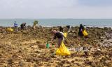 Aksi bersih pantai dalam upaya menjaga laut bebas dari sampah plastik tersebut dalam rangka menyambut HUT ke-78 Kemerdekaan RI.