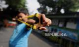 REPUBLIKA.CO.ID, TEBET. -- Anak-anak berlatih ketapel di Markaz Ketapel Pandan Lovers (Kepal), Tebet, Jakarta Selatan, Sabtu (12/8/2023).