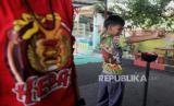 Anak-anak memilih frame untuk berlatih ketapel di Markaz Ketapel Pandan Lovers (Kepal), Tebet, Jakarta Selatan, Sabtu (12/8/2023). Latihan yang diadakan rutin seminggu dua kali oleh Komunitas Ketapel Pandan Lovers itu untuk mengenalkan permainan tradisional ketapel kepada anak-anak sekaligus melatih insting, meningkatkan konsentrasi dan mengurangi penggunaan gawai pada anak. (FOTO : Republika/Putra M. Akbar)