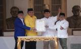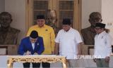 REPUBLIKA.CO.ID, JAKARTA -- JAKARTA -- Partai Golkar dan Partai Amanat Nasional (PAN) resmi meneken kerja sama untuk bergabung dalam Koalisi Kebangkitan Indonesia Raya (KKIR). Dalam deklarasinya, kedua partai politik tersebut juga secara resmi menyatakan dukungannya kepada Ketua Umum Partai Gerindra, Prabowo Subianto.