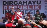 Bupati Kabupaten Bandung Barat Hengki Kurniawan menyampaikan sambutan saat Pesta Rakyat dan Silaturahmi dengan Bupati Bandung Barat di lapangan Pusdikajen, Jalan Maribaya, Kecamatan Lembang, Kabupaten Bandung Barat, Ahad (13/8/2023). Kegiatan dalam rangka memeriahkan HUT ke-78 RI ini diikuti oleh seluruh desa di kecamatan Lembang dengan berbagai kegiatan sosial dan aneka lomba permainan tradisional. (FOTO : Edi Yusuf/Republika)