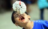Lomba HUT RI: Seorang peserta berusaha menghabiskan kerupuk bumbu kecap pada Lomba HUT ke-71 RI, di Komplek Pusdikajen, Desa Kayuambon, Kecamatan Lembang, Kabupaten Bandung Barat, Ahad (21/8). Berbagai kegiatan menyemarakan HUT kemerdekann RI, hingga saat ini masih terus digelar oleh masyarakat. (FOTO : Republika/Edi Yusuf)