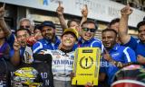 REPUBLIKA.CO.ID,LOMBOK -- Pebalap Yamaha Gen Blu Racing Team Soichiro Minamimoto (tengah) berpose bersama timnya saat seremoni podium usai mengikuti race dua kelas SS600 Idemitsu FIM Asia Road Racing Championship (ARRC) 2023 di Pertamina Mandalika International Street Circuit, KEK Mandalika, Desa Kuta, Kecamatan Pujut, Praya, Lombok Tengah, NTB, Ahad (13/8/2023).