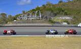Pebalap Yamaha Gen Blu Racing Team Soichiro Minamimoto (tengah) memacu motornya mengejar pebalap Honda Racing Thailand Nakarin Atiratphuvapat (kanan) saat mengikuti race dua kelas SS600 Idemitsu FIM Asia Road Racing Championship (ARRC) 2023 di Pertamina Mandalika International Street Circuit, KEK Mandalika, Desa Kuta, Kecamatan Pujut, Praya, Lombok Tengah, NTB, Ahad (13/8/2023). Pebalap Yamaha Gen Blu Racing Team Soichiro Minamimoto menjadi yang tercepat pada race dua kelas SS600 dengan catatan waktu 1 menit 38,410 detik disusul pebalap Honda Racing Thailand Nakarin Atiratphuvapat diposisi kedua dan pebalap asal Indonesia dari Astra Honda Racing Team Mohhamad Adenanta Putra diposisi ketiga. (FOTO : Antara/Ahmad Subaidi)