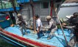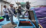 Komandan KN Marore-322 Badan Keamanan Laut (Bakamla ) Letkol Yuli Eko Prihartanto (kedua kiri) bersama anggotanya memeriksa kapal ikan asing (KIA) yang berhasil diamankan di dermaga Pelabuhan Batu Ampar, Batam, Kepulauan Riau, Senin (14/8/2023). KN Marore-322 Bakamla menangkap satu KIA berbendera Vietnam yang diduga melakukan penangkapan ikan secara ilegal di wilayah perairan Indonesia di Laut Natuna Utara pada 11 Agustus 2023. (FOTO : ANTARA FOTO/Teguh Prihatna)