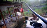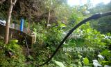 Pipa HDPE untuk menyalurkan air bersih dari Goa Pule Jajar di Desa Jepitu, Kecamatan Girisubo, Gunungkidul, Yogyakarta, Senin (14/8/2023). Setiap kemarau warga di Desa Jepitu, Kecamatan Girisubo sangat bergantung dari air yang disedot dari sumber air di dalam Goa Pule Jajar. Saat ini warga mulai terbantu dengan dialirkannya air ke tandon-tandon air di sekitar permukiman di atas lokasi goa, sehingga tidak perlu mengambil dengan jeriken. Namun, setiap pagi dan sore saat kemarau warga masih mendatangi lokasi penampungan air di deket goa untuk mandi atau mencuci perkakas serta pakaian. Titik sumber air di dalam Goa Pule Jajar mencapai 1.300 meter dengan debit 1,23 liter/ detik. (FOTO : Republika/Wihdan Hidayat)