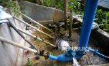 Bak penampungan pertama dari penyedotan air bersih Goa Pule Jajar di Desa Jepitu, Kecamatan Girisubo, Gunungkidul, Yogyakarta, Senin (14/8/2023). Setiap kemarau warga di Desa Jepitu, Kecamatan Girisubo sangat bergantung dari air yang disedot dari sumber air di dalam Goa Pule Jajar. Saat ini warga mulai terbantu dengan dialirkannya air ke tandon-tandon air di sekitar permukiman di atas lokasi goa, sehingga tidak perlu mengambil dengan jeriken. Namun, setiap pagi dan sore saat kemarau warga masih mendatangi lokasi penampungan air di deket goa untuk mandi atau mencuci perkakas serta pakaian. Titik sumber air di dalam Goa Pule Jajar mencapai 1.300 meter dengan debit 1,23 liter/ detik. (FOTO : Republika/Wihdan Hidayat)