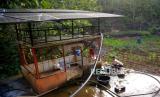 Pompa yang digunakan untuk menyedot air dari dalam Goa Pule Jajar di Desa Jepitu, Kecamatan Girisubo, Gunungkidul, Yogyakarta, Senin (14/8/2023). Setiap kemarau warga di Desa Jepitu, Kecamatan Girisubo sangat bergantung dari air yang disedot dari sumber air di dalam Goa Pule Jajar. Saat ini warga mulai terbantu dengan dialirkannya air ke tandon-tandon air di sekitar permukiman di atas lokasi goa, sehingga tidak perlu mengambil dengan jeriken. Namun, setiap pagi dan sore saat kemarau warga masih mendatangi lokasi penampungan air di deket goa untuk mandi atau mencuci perkakas serta pakaian. Titik sumber air di dalam Goa Pule Jajar mencapai 1.300 meter dengan debit 1,23 liter/ detik. (FOTO : Republika/Wihdan Hidayat)