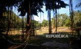 Kondisi telaga yang sudah mengering di Telaga Kepuh, Paliyan, Gunungkidul, Yogyakarta, Senin (14/8/2023). Pada musim kemarau tahun ini Pemkab Gunungkidul menetapkan siaga darurat kekeringan, karena 14 dari 18 kecamatan mengalami kesulitan air bersih. Kebijakan ini berlaku hingga 30 September mendatang. Sementara itu, daerah yang terbebas dari kesulitan air bersih yakni Wonosari, Karangmojo, Playen, dan Semin. (FOTO : Republika/Wihdan Hidayat)